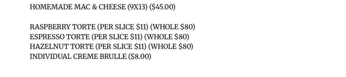 We do our very best to keep the menus on our website current. However, due to daily changes in product availability & quality, menu items may vary or not be exactly as they appear on our website. Please call or email us to receive a copy of today’s menu.